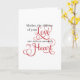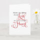 Simple, clean card front for Mother's Day with typography that reads, "Mother, the ribbons of your Love are woven around my Heart" with Love and Heart in bold red print.