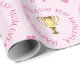 This soft pink wrapping paper has editable text in deep pink, surrounding a shiny golden 'No. 1' trophy. The default greeting, ready for you to personalise, is "HAPPY MOTHER'S DAY BEST MUM EVER". The background is pale pink, and there are additional decorative pink hearts.