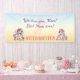This banner shows two happy Mum unicorns, with their kids, on a gradient background. The text reads, "We love you, Mum! Best Mum ever!," and is customisable. It's perfect for including at a unicorn-themed Mother's Day party!