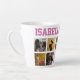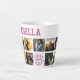 Create a heartwarming keepsake with this personalised Mother's Name and Photo Collage Latte Mug. This stylish mug features a 9 photo collage with a customisable name and a Best Mum Ever quote in modern black script, accented by delicate pink florals. Add your own photos and name to create a unique gift that mum will cherish. Perfect for Mother's Day or any special occasion, this mug is fully customisable online. Get yours now!