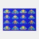 Doormat in a grid of detailed, beautiful moths in dark blue, turquoise, orange and golden yellow on a deep cobalt blue background