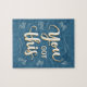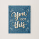 You Got This Unique jigsaw puzzle with a hand-made lettering design of an inspirational quote in a chic blue style. The hand lettering adds an artistic touch that turns the puzzle into a beautiful piece of art. It makes a great gift for a puzzle enthusiast or to encourage someone in hard times. Relax, have fun, and always remember—you got this!