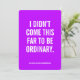 Stand out with every word. This empowering pink card features the bold message: “I didn’t come this far to be ordinary.” — a perfect reminder to chase dreams unapologetically. Whether you're cheering on a graduate, celebrating a milestone, or surprising a friend who’s levelling up in life, this custom card makes an unforgettable motivational gift. Personalise it inside with your own message for a truly meaningful touch.