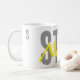This motivational mug pairs bold grey typography with a vibrant yellow script accent, creating the perfect morning reminder to keep pushing forward.