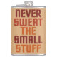 Well made flask, a little better than I had expected. Flask came in clear plastic box which gave it a nice presentation when I took it out of the zazzle packaging. Image is not printed on flask but on sticker. Don't know how this will hold up I haven't used it yet. This would make a Great gift! I plan to purchase more for friends! Cheers. I thought a little brighter than computer. Very crisp, writing wasn't