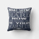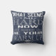 Striking and modern, this quote is designed using bold, graphic typography. The quotation reads "What seems so hard now will some day be your warm up" and is printed in white against a solid background of your choosing. Show here with a navy blue background, this colour can be easily changed using the 'Customise' function. The quote is printed on both the front and the back side of the pillow. Just the words to inspire you to work harder and motivate you towards your goal!