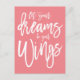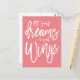 Send someone motivational words with the inspirational quote Let Your Dreams Be Your Wings in an artsy script in white on a coral background.