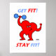 Determined little cartoon heart works out with blue barbell on this motivational inspiration cardio fitness gym poster which urges class to Get Fit, Stay Fit! Need some exercise motivation or know someone who does? Inspirational motivational heart fitness poster was created to encourage exercise and fitness. Great for health clubs, fitness centres, gyms, cardiologist offices or individuals who like to exercise for health and enjoyment.