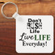 Motivational keychain with the wording, Don't Rush Life, Live Life Everyday in black and green text with assorted fonts for male or female of all ages to remember to enjoy life and have fun. Original Slogan and design © 2019 TamiraZDesigns. All Rights Reserved. Visit my store for more original items: www.zazzle.com/tamirazdesigns