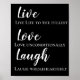 Words to live by...Live everyday as if it were your last...Love unconditionally...there is no perfect love and it is important to give love without expecting it in return as conditional love is not love at all and Laugh...seek to see the positive things in all because if we do not laugh than the opposite will have to happen and crying just makes my eyes red!