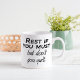 Motivational mugs quote to inspire and give confidence. A script typography design in black and white that reads: Rest if you must, but don't you quit. Cute modern saying for a friend, coworker or family member.
