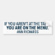 If you aren't at the table, you are on the menu - Ann Richards, democrat governor of Texas. Cool democratic party Texan car bumper sticker for someone who works the polls and will vote blue in the election.