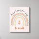 Add a touch of warmth and positivity to your space with this charming boho-inspired wall art. The design features a gentle, pastel-coloured rainbow with a series of arcs in soothing tones of peach, mint, and cream, each decorated with delightful patterns such as scallops and tiny hearts. In the centre of the rainbow, a single heart echoes the message above it: "It's a beautiful day to smile".