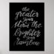Inspiring poster featuring the elegant calligraphic rendition of the uplifting quote: "the greater your storm, the brighter your rainbow." This beautifully crafted piece not only serves as a stylish decor element but also offers a powerful reminder that challenges can lead to brighter and more vibrant outcomes. Elevate your space with this motivational poster, where the art of words meets the art of resilience. Perfect for adding a good vibe to any space. Discover our collection of motivational posters with inspiring quotes for he and her and more. Elevate your decor with this poster that exudes positivity and motivation.