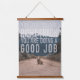 The polyester fabric displayed many wrinkles and several sharp creases throughout. At the bottom of the tapestry, I noticed a bulge in the fabric because it was not pulled tight enough before being connected to the wooden boards. It took me over an hour to spay water on the tapestry before putting it on an ironing board where I used a warm iron over a polyester cloth to remove the wrinkles and creases in the material. I was able to get out the wrinkles and creases that made that tapestry look as beautiful as its picture.