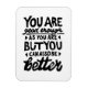 Black and white lino print of a motivational quote that says "You are good enough, but you can always be better". Offers encouragement for people to know that self-acceptance and growth go hand in hand.