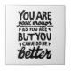 Black and white lino print of a motivational quote that says "You are good enough, but you can always be better". Offers encouragement for people to know that self-acceptance and growth go hand in hand.