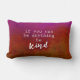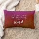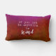 This quote pillow has a distressed ombre background in shades of magenta and rust with white text be kind for home decor.