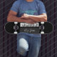 A modern, stylish, sports skateboard with a motivational quote Smile it`s free. The background is black but you can change the colours by clicking the "customise it"