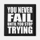 You can add some originality to your wardrobe collection with this " you never fail until you stop trying" text design with awesome typography font lettering, is a great gift idea for men, women, husbands, wife girlfriend, and a boyfriend who will love this unique motivation and inspirational saying artwork. The best amazing short positive sayings present for your wisdom collection. If you like this artwork, you can check out other similar designs and options.