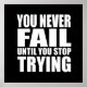You can add some originality to your wardrobe collection with this " you never fail until you stop trying" text design with awesome typography font lettering, is a great gift idea for men, women, husbands, wife girlfriend, and a boyfriend who will love this unique motivation and inspirational saying artwork. The best amazing short positive sayings present for your wisdom collection. If you like this artwork, you can check out other similar designs and options.