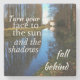 A motivational quote saying "Turn your face to the sun and the shadows fall behind". This is a great gift for someone who you know is facing a difficult challenge.