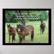 Pretty horses grazing in a green pasture. A motivational quote about horses.