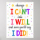 'CHANGE I CAN'T INTO I WILL AND SOON YOU WILL SAY I DID!' Classroom Poster.