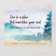If living in a place that nourishes your soul is important to you, then you've made a wise decision to move to that very place... the mountains. Our new address postcard features a watercolor mountain scene with a motivational text graphic that says "Live in a place that nourishes your soul" and informational text that states "So we moved to the mountains." On back of this card, family and friends will learn the rest of your important news - your new contact information. All text on front and back except for text graphic can be easily revised on the personalisation template.