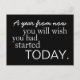 A year from now you will with you had started today. postcard from gotdonna in black and white.