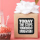 Need a motivational lift? Be inspired by this original motivational quote, "Today the Steps, Tomorrow the Mountain", rendered in heavy block lettering.