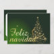 Motivo de Navidad verde con árbol de Navidad hecho de estrellas doradas con las palabras Feliz Navidad en alemán, en español, en francés, en inglés