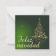 Motivo de Navidad verde con árbol de Navidad hecho de estrellas doradas con las palabras Feliz Navidad en alemán, en español, en francés, en inglés