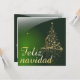 Motivo de Navidad verde con árbol de Navidad hecho de estrellas doradas con las palabras Feliz Navidad en alemán, en español, en francés, en inglés