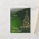 Motivo de Navidad verde con árbol de Navidad hecho de estrellas doradas con las palabras Feliz Navidad en alemán, en español, en francés, en inglés