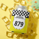Tailgate in style at your next motocross race with a personalised foam can sleeve. This can wrap has a white number plate graphic that's ready to be personalised with your name and bike number. The number plate is set against a yellow background with a black and white chequered flag border.