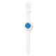 You will definitely look stylish in this watch. Featuring an all-white band, this watch has a blue face with silver and white trimming and white numbers.