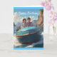 This fun birthday card features a cartoon couple speeding in a motorboat.