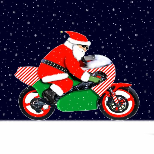 Funny cyclist Santa Claus on a motorcycle and creative Christmas quote for motorcyclist, biker and motocross racers.