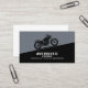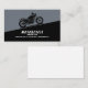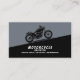 A professional business card featuring a sleek black motorcycle silhouette, positioned diagonally across the card, conveying speed and professionalism in a color palette of black, silver, and dark blue gray. It could also be used for automotive or motorcycle-related services (sales, shop, repair, motorcycle school, etc).