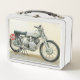 This is a standard metal lunchbox that appears to work just fine. We designed this box ourselves with an uploaded photo and custom text on the front and back. It looks absolutely beautiful except the front of the lunchbox is not centered like it shows in the photo. The print borders don't align with the inset flat part of the box where the preview photo online showed it perfectly centered in there. The back looks nice and centered though.