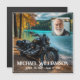 Announce your loved one's well-lived life with this card featuring a beautiful illustration of a motorcycle parked near a lake.