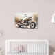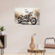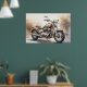 Poster of a classic motorcycle. Earth-toned foliage in the background adds a warm, rustic ambiance.