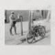 A postman with a Flying Merkel motorcycle collecting letters from a mailbox. 1909.