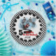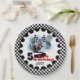 Kids who love racing and motorcycles will love this 5th birthday motorcycle racing theme paper plate design featuring a red motorcycle with driver, chequered flags, text that reads It's My 5th Birthday, and a border with a black decorative ring and black and white checks. You can easily personalise these racing theme fifth birthday paper plates with a name before ordering.