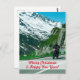 Motorcycle rider in snowy mountains Christmas Postcard
