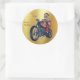 Motorcycle Riding Santa Claus on Gold Foil Classic Round Sticker