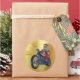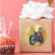 Does your guy ride a motorcycle? Well, then you really need to use these stickers on all his Christmas presents!  Santa looks like one cool dude in his Santa suit on a patriotic, red, white and blue motorcycle. The background is a shiny gold foil.