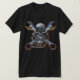 motorcycle skull with crossed wrenches tshirt. This motorbike tshirt with its crossed wrenches and metal skull against a motorcyle engine all in lovely shiny metal mixes death skull, motorcycles and rock and roll in one great tshirt. Can also be customized to cycle clubs, this twist on the traditional pirate tshirt will be perfect for bikers on pirates day ! Goths and mechanics or dads who love tinkering in garages will love this gift tee shirt too.
