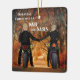 This unique couples first Christmas ornament design features beautiful autumn forest road scenery with a couple on motorcycles holding hands. The couple has blonde hair. Other hair colour combinations are available upon request! The text on the front of the ornament reads "Our first Christmas as Mr and Mrs". Easily customise the back of this ornament with names and a year.